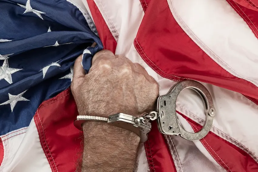 Person getting handcuffs removed after posting bail at Texas county jail showing the bail release process